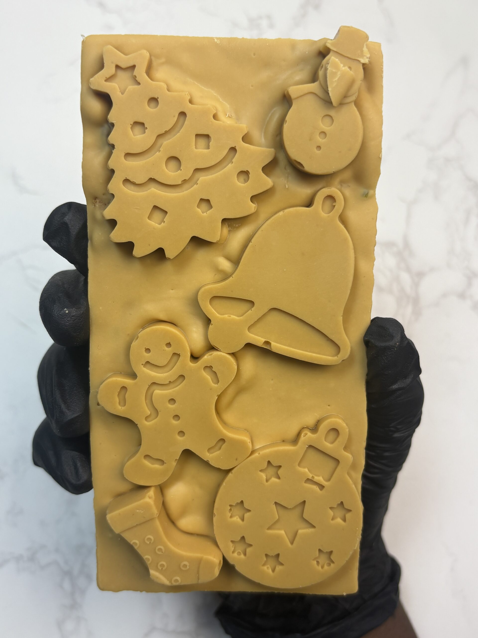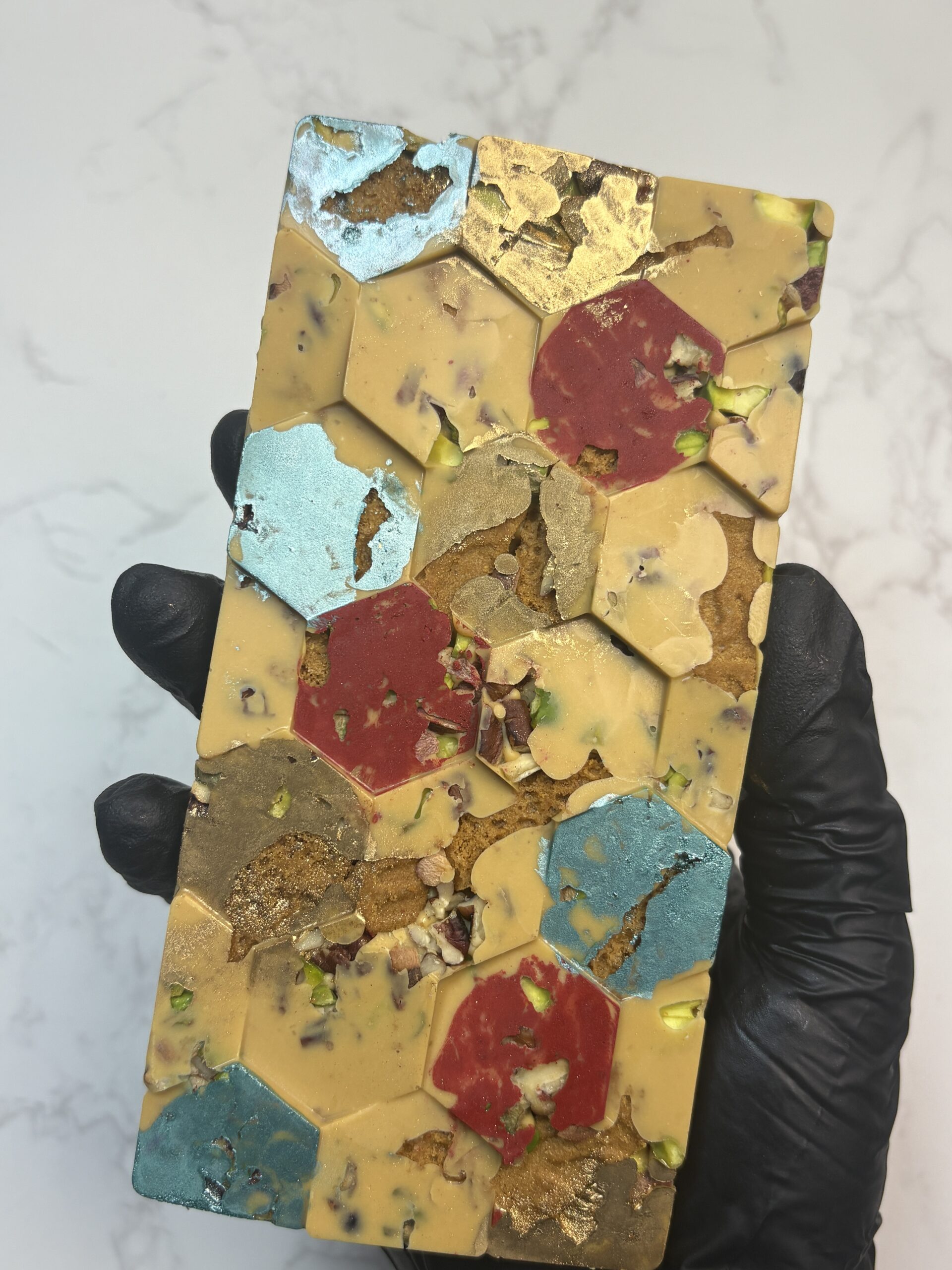 Our Golden Sleigh Bar is a luxurious caramelized white chocolate creation crafted to capture the magic of the holidays. Each bar features smooth, golden chocolate layered with delicate notes of Biscoff, roasted pistachios, and pecans, finished with handcrafted chocolate accents shaped in festive designs.